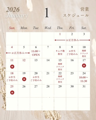 下記に 1月の営業カレンダー を掲載していますので、ご来店・ご予約の際の参考にしてください。